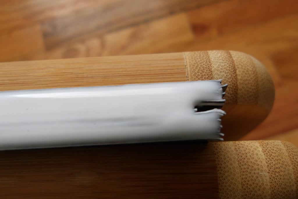 From a glance everything looks copacetic, however, upon zooming in you'll see quite a huge discrepancy. Notice the top of the spine on the right hand side there's a little bit of a gap there. Can you see it? No? No worries, take a look at the magnified version below: