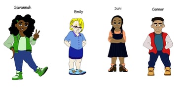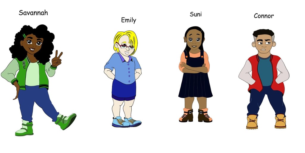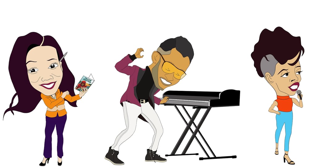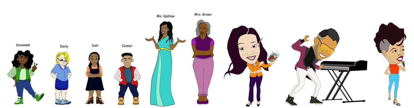 Character designs for the Savannah Green Project, and portraits of the team from Butterpecan Productions for Gloria Respress-Churchwell, Bryard, and Xan respectively.