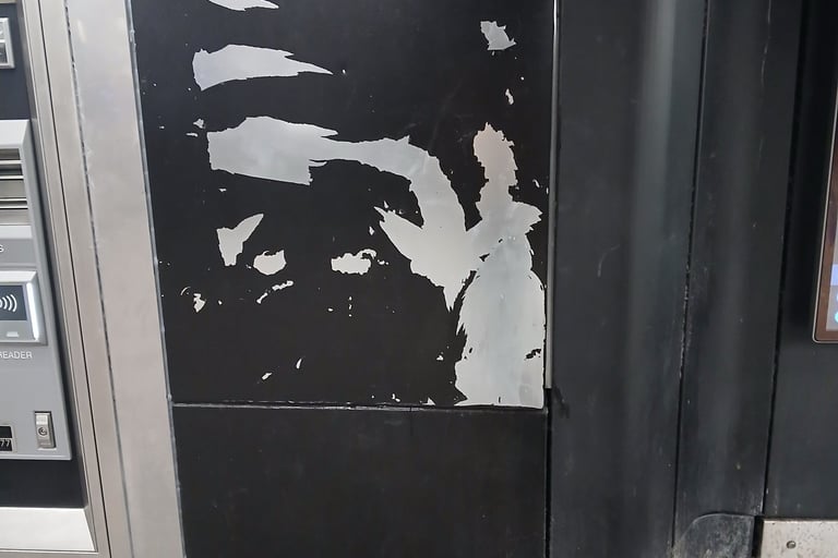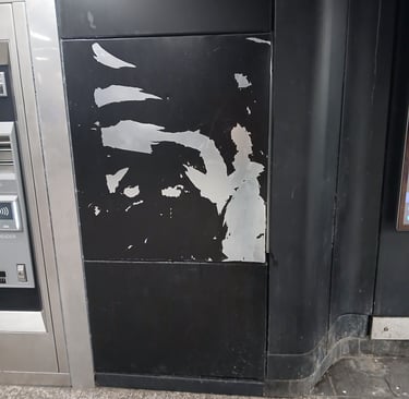 So step one as you know is just as you have seen it before. The decrepit image standing alone in an aging subway system. But, what you haven't yet seen is what comes next! And so without further ado here's the first step in how I interpreted this image as shown above, and below