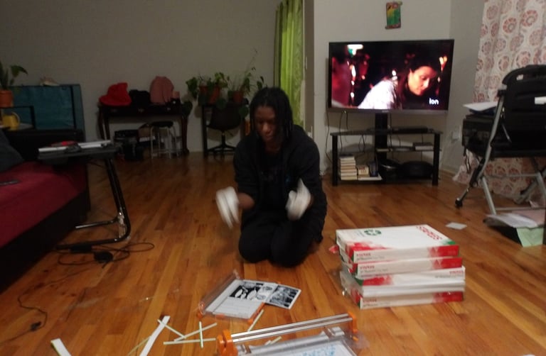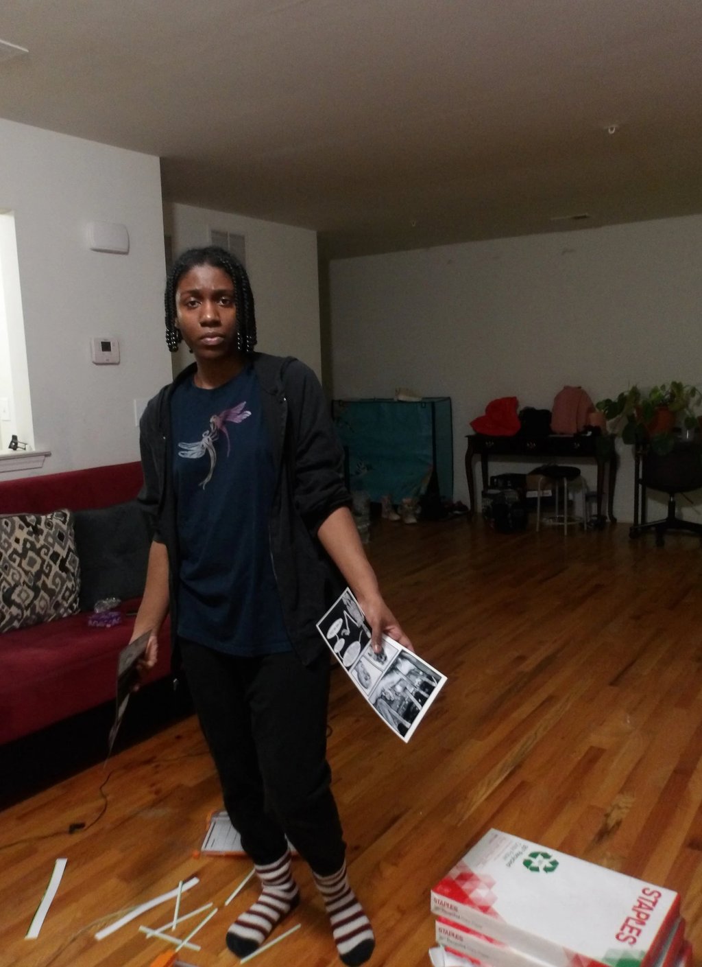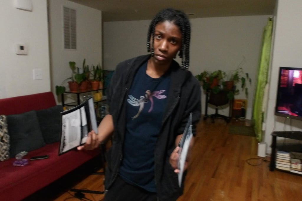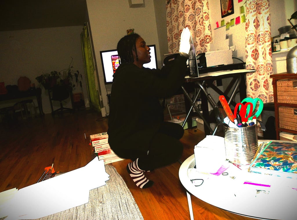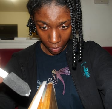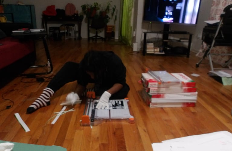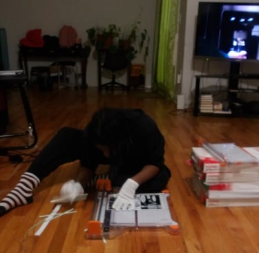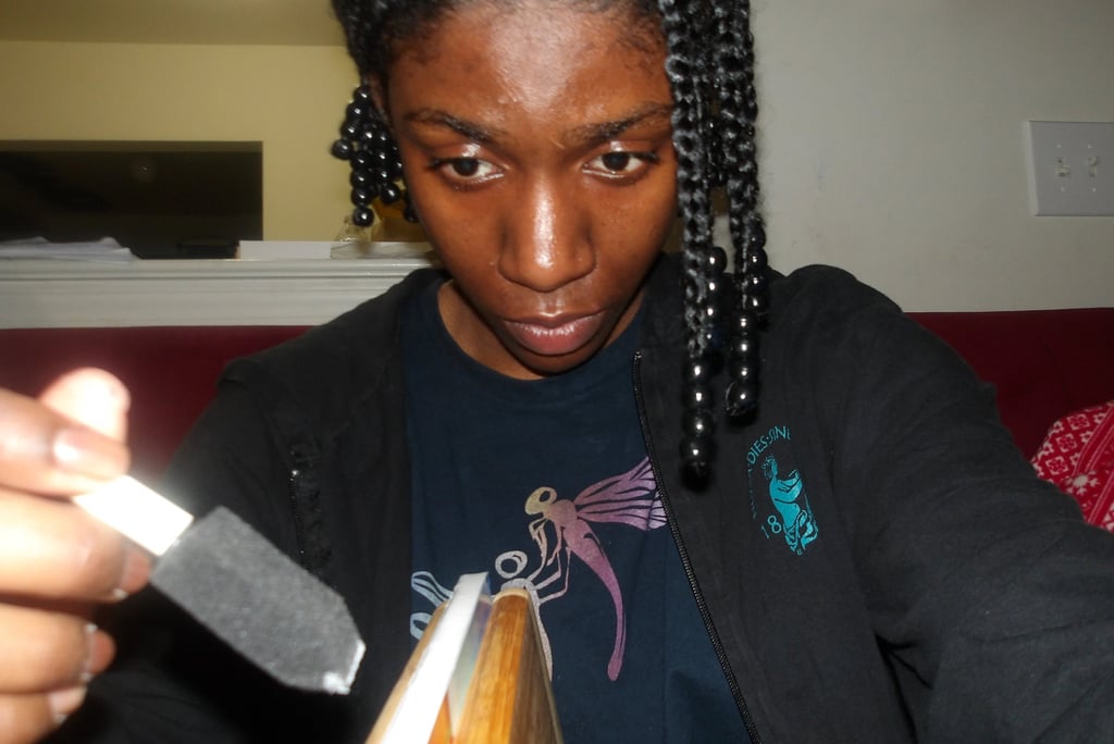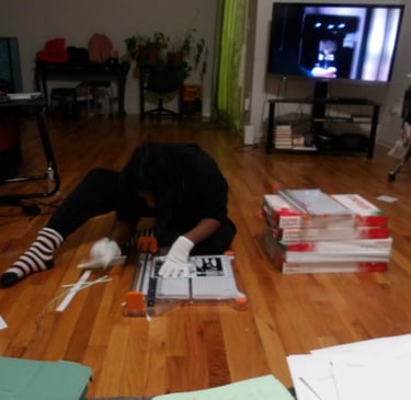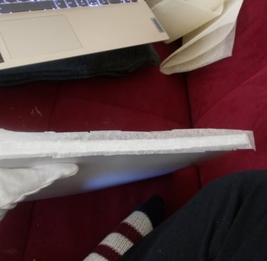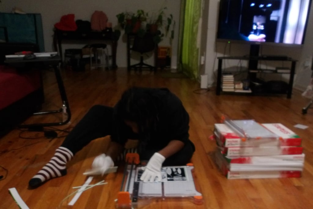 After scoring the spine, it was then time to attach the cover to the signature. Here came my next problem. The cover was way too large for the signature. Now, this is completely baffling to me. I've measured the perimeter of the signature multiple times; I then adjusted the size of the cover accordingly several times in Krita, and yet, the size of the cover was still too large. I am still troubleshooting this, because as it stands right now I end up chopping off important details, like a part of the Apple's arm which is truly not what I want to do.