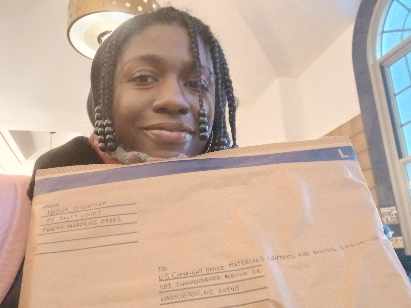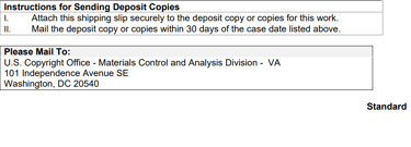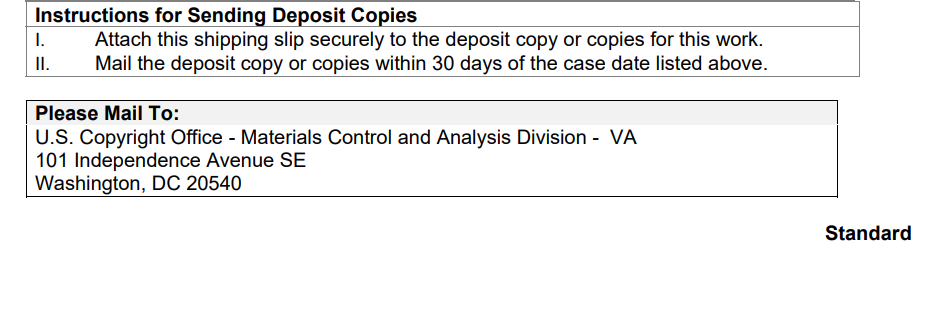 The only thing I'm slightly concerned about is the address to which I mailed my book to. You see after registering my work electronically, I received a shipping slip that told me to mail my book to: