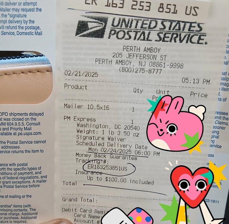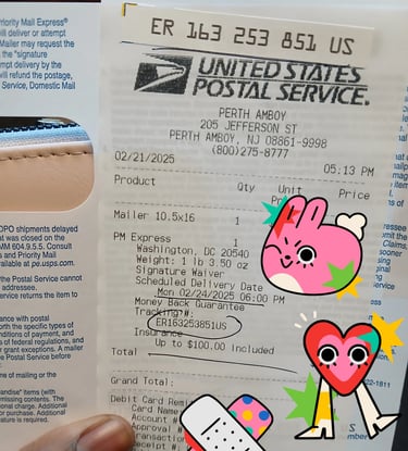 AND! I do have a receipt, it's supposed to arrive on Monday. I'm good, I'm good. Also, me being the me that I am, you can best believe that I will be checking the status of my copyright application every so often (perhaps every hour on the hour). Hey! Can you blame me, this is my baby. I started working on this project 3 years ago, and so shipping it off today kind of feels like I'm sending my kid off to college....