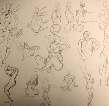 Okay so I'm not big on New Year's Resolutions because I'm in the mindset that I should be improving and working on stuff all year round but, I do have to say that this year, in preparation for making more comics with human characters, and creating more character designs, I really want to be elevating the quality of my portraits and figure drawing. You got a sneak peak of my portrait efforts in my previous post and now we're moving on to figuring out my figures. No no no not my figure, but figuring out figures in general, specifically drawing them with greater dexterity and proficiency.