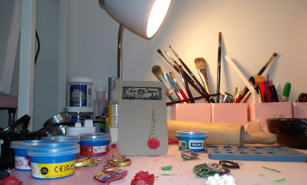 That said, I am trying to speak more kindly to myself. Previously, my tendency would be to say things like "Ugh, you're so behind schedule" or "Look at you resting when you should be working--don't you have to launch this website as soon as possible?! Sooner rather than later ". But lately I've been trying to challenge and circumvent these feelings. So I took quite a bit of time off after breaking the paper cutter which was good, I needed that. The discipline I've built up working on my art everyday has waned and that's okay Najwa, now all we have to do is gently ease ourself back into things, but again I remind you gently. So yeah, making only one earring, according to Najwa standards, is not ideal, but it's something. Sure, I can't cut the books once I've printed them but, in the interim, I've managed to print 3 more books as I wait to buy a new one.